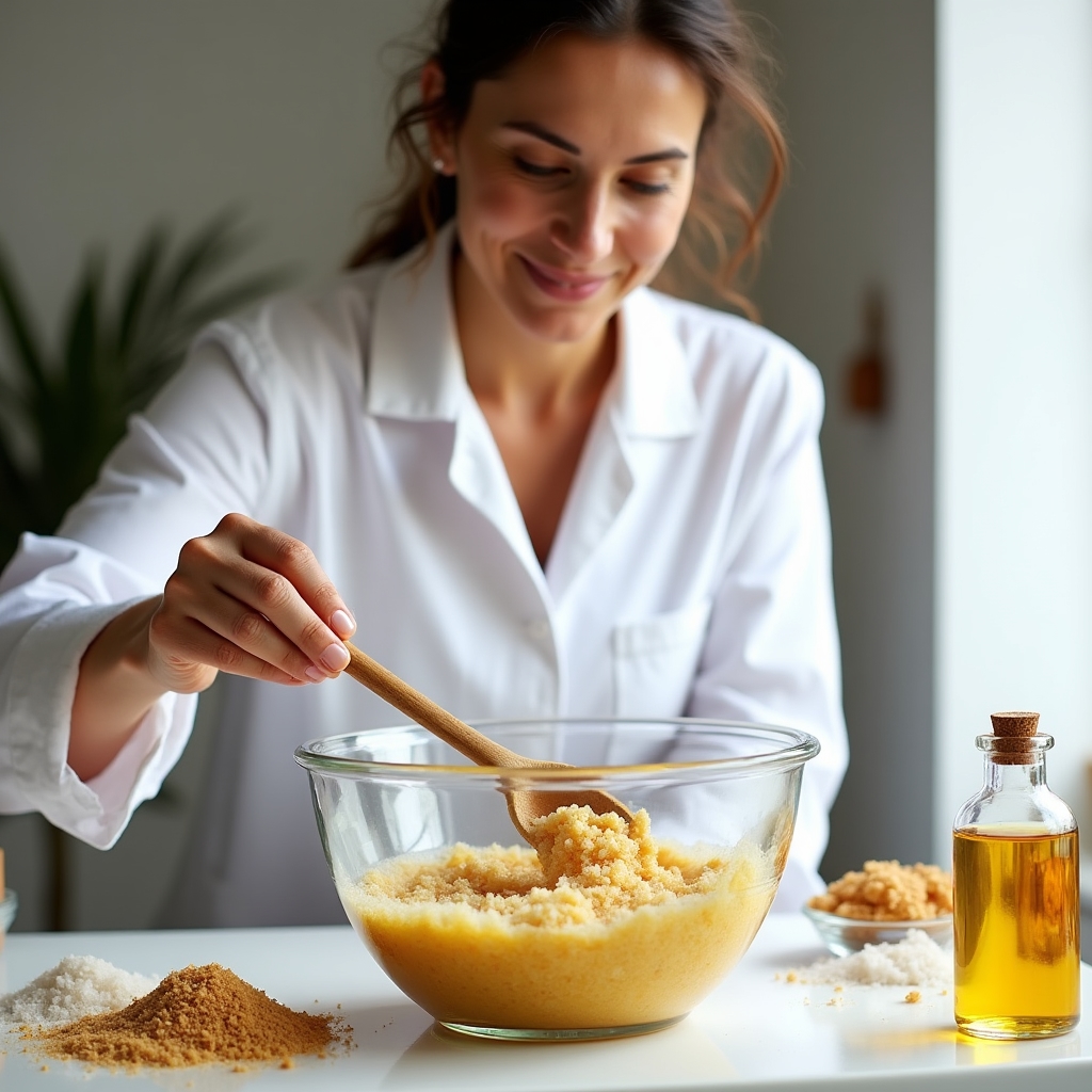 Zucchero, sale marino, argilla: le basi degli esfolianti naturali. Come bilanciare texture, profumazione e proprietà attive.